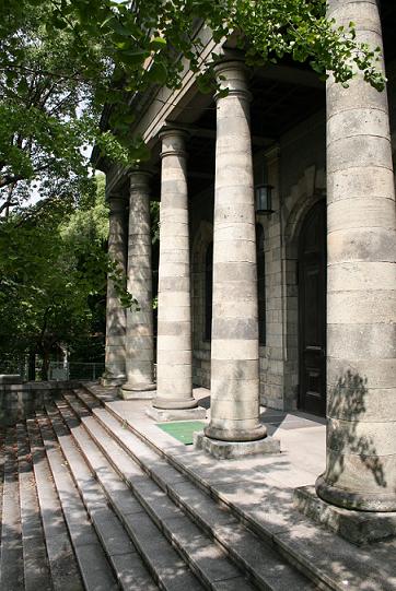 大阪造幣寮金銀貨幣鋳造場玄関部分(明治天皇記念館) 造幣寮の貨幣鋳造工場の玄関部分のみが残され、1935年に建てられた明治天皇記念館の玄関として再利用された。のちにこれが桜宮公会堂となり、1984年からはユースアートギャラリーとして活用されてきたが、2007年に閉鎖。泉布観の横に建つ。