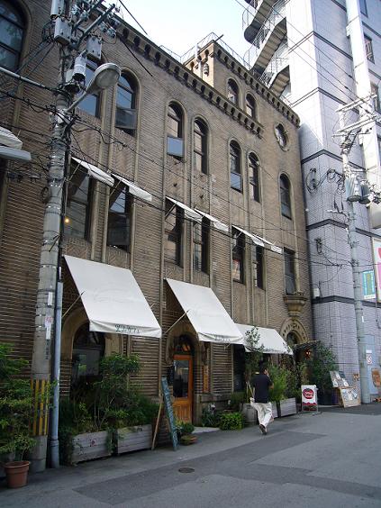 山内香法律特許事務所 土佐堀川沿いに建つシックな佇まいの洋館は、よくみてみると連続するアーチ窓や軒先のロンバルディアバンド、ステンドグラスといったロマンティックな装飾でみる者を楽しませてくれる。元々は法律事務所として建てられ、長らく1階に洋食店があったが、今はオーガニック食材を使う2つのレストランが1,2階で営業している。