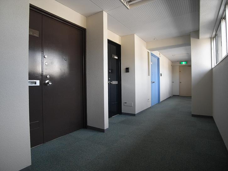 ブルーが当階、ブラウンが下階、ネイビーが上階の扉